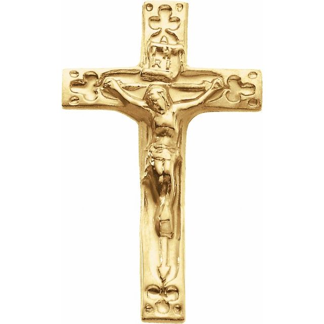 Part of our Religious Accessories line, this Crucifix Lapel Pin features a weight of 1.69 Dwt, which is the equivalent of 2.63 grams.