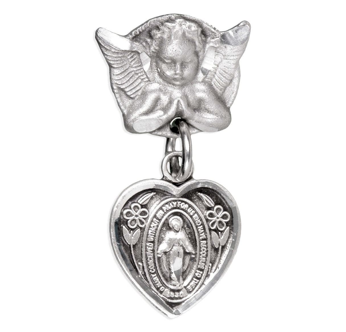 Sterling Silver Heart Shaped Miraculous Baby Pin