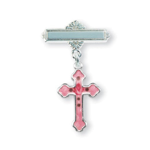 Sterling Silver Pink Flower Enameled Baby Cross Pin