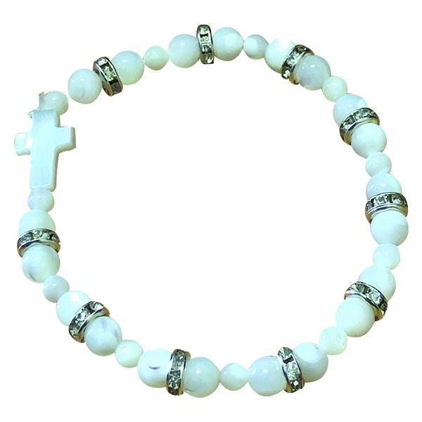 Mother of Pearl Cross Stretch Bracelet with Crystals 4-pack