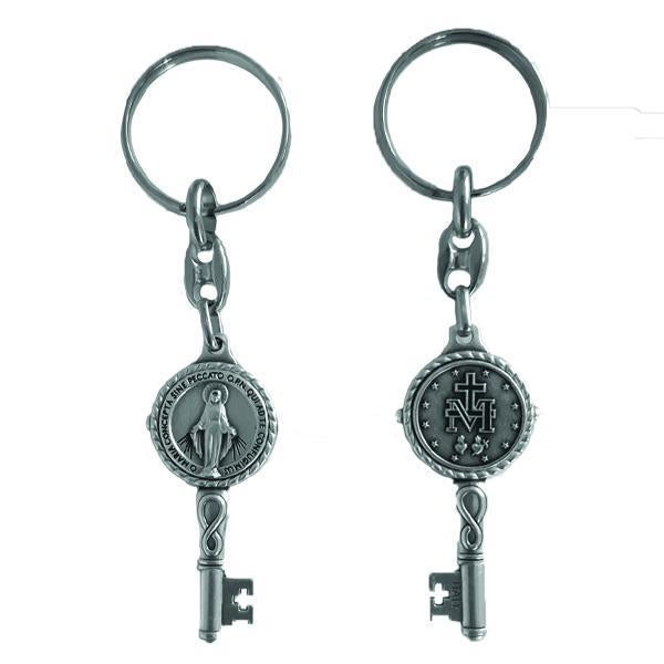 Silver-tone Key Shaped Key Ring - Miraculous Medal 6-pack