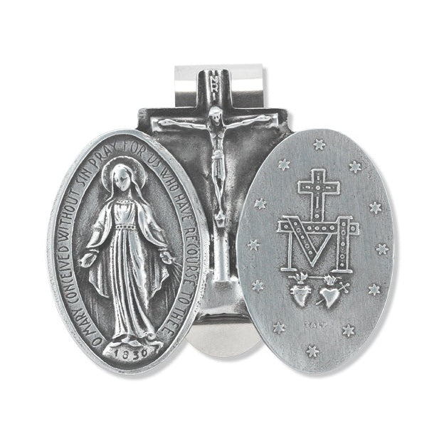 Elevate your daily travels with our Miraculous Medal Visor Clip 3-Pack . Each genuine pewter clip, measuring 2.25 inches x 2 inches , is designed to inspire and protect you on your journeys. These clips come individually carded , making them perfect for personal use or thoughtful gifts for family and friends.