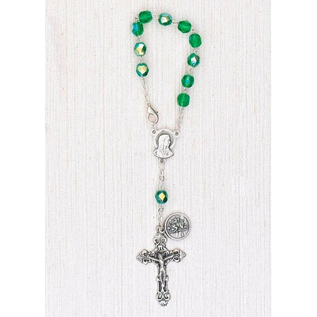 4-Pack - 6mm Glass Green Auto Rosary with Premium Centerpiece and Crucifix with St Christopher Pendant