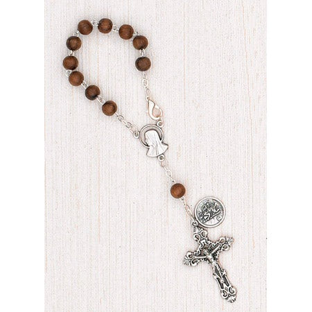 4-Pack - 6mm Wood Auto Rosary with Premium Centerpiece and Crucifix with St Christopher Pendant