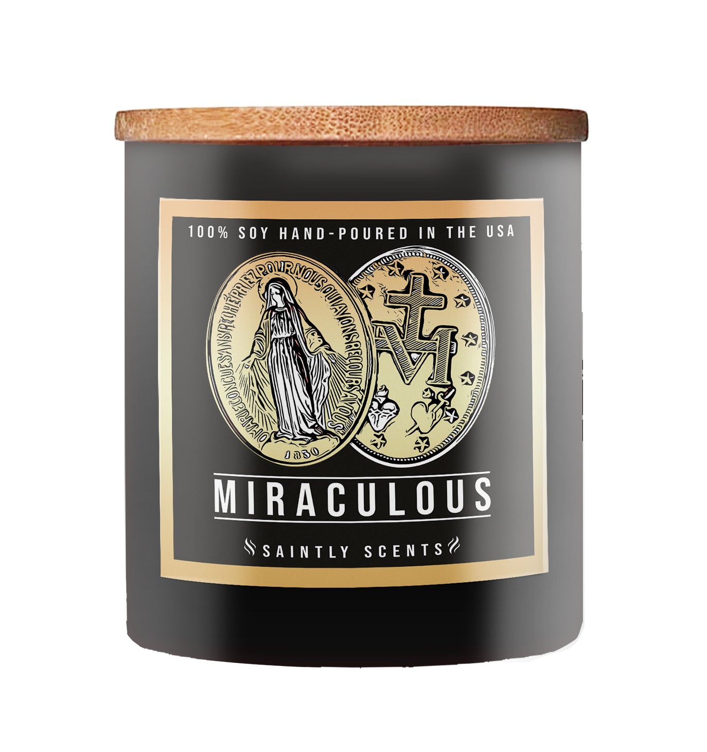 Our handmade Miraculous Medal scented candle by Saintly Scents features our signature Miraculous fragrance in honor of the grace and beauty of Our Lady, whose apparitions to St. Catherine Laboure in Paris, France led to the Miraculous Medal's creation and distribution (learn more). This scented candle is the perfect prayer companion with its golden image of the Miraculous Medal and it's special blended scent which we call Miraculous.
