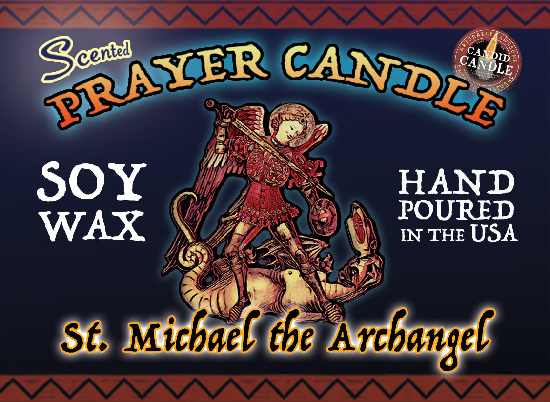 Our handmade St. Michael Prayer Candle features imagery of the beloved Archangel and the St. Michael prayer on the back.