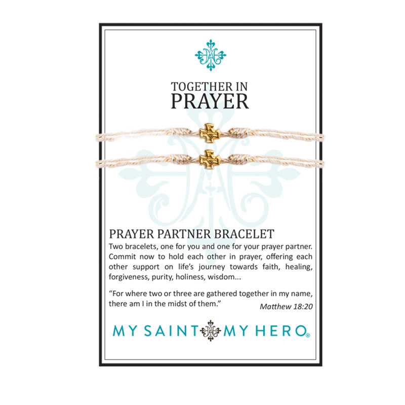 Two bracelets, one for you and one for your prayer partner. Commit now to hold each other in prayer, offering each other support on life’s journey towards faith, healing, forgiveness, purity, holiness, wisdom…