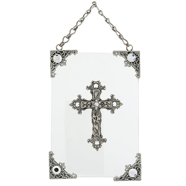 Silver-Tone and Crystal Hanging Glass Wall or Window Plaque