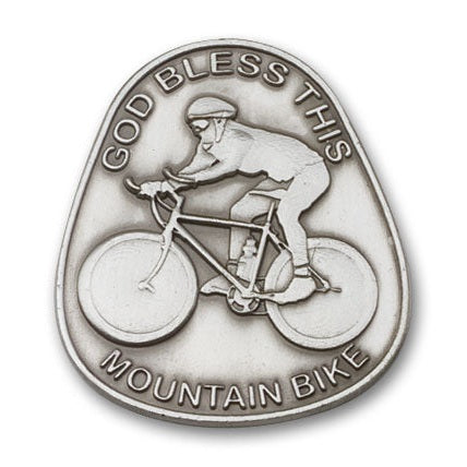 The medium-sized God Bless This Mountain Bike Visor Clip will arrive in a deluxe jewelry box, ready to wear or give as a gift.