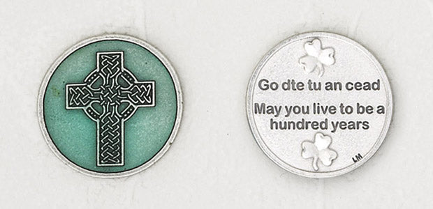 12-Pack - Celtic Cross Enamel Token with Prayer Silver Plated