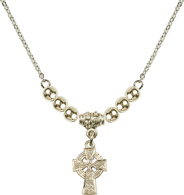 Gold-Plated Necklace with 4mm 14kt Gold Filled Beads & 14K-Filled Celtic Cross Medal