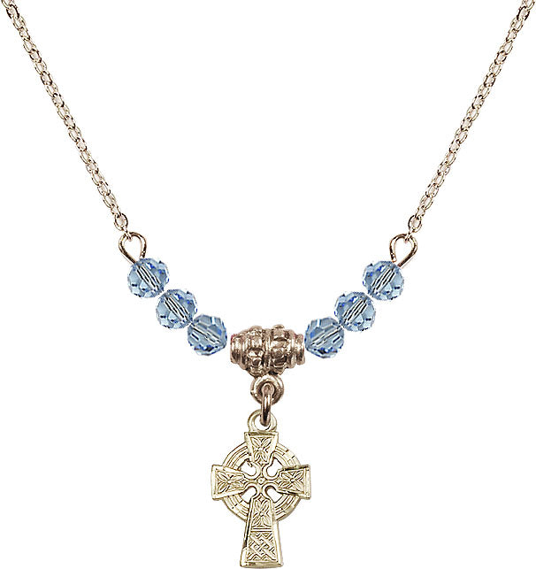 Gold-Plated Necklace with 4mm Aqua Crystal Beads & 14K-Filled Celtic Cross Medal