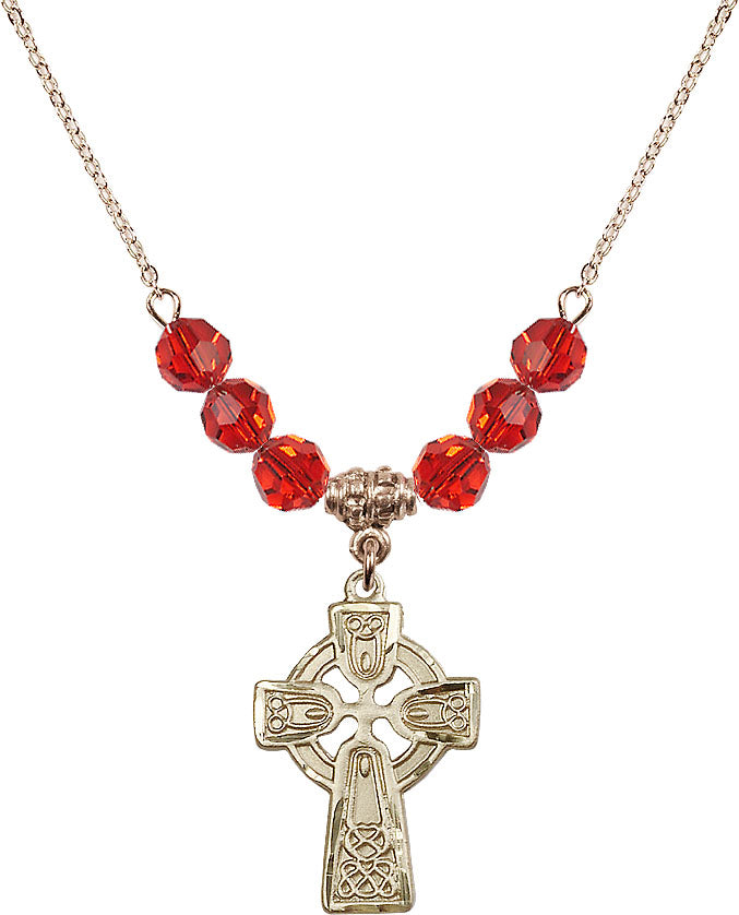 Gold-Plated Necklace with 4mm Ruby Crystal Beads & 14K-Filled Celtic Cross Medal