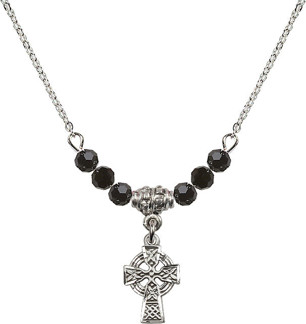 Our 18" Rhodium Plated Necklace with 4mm Jet Crystal Beads featuring a Sterling Silver Celtic Cross Medal. is proudly manufactured in the USA.