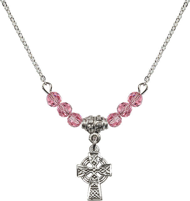 Our 18" Rhodium Plated Necklace with 4mm Rose Crystal Beads featuring a Sterling Silver Celtic Cross Medal. is proudly manufactured in the USA.