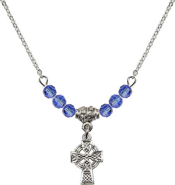 Our 18" Rhodium Plated Necklace with 4mm Sapphire Crystal Beads featuring a Sterling Silver Celtic Cross Medal. is proudly manufactured in the USA.
