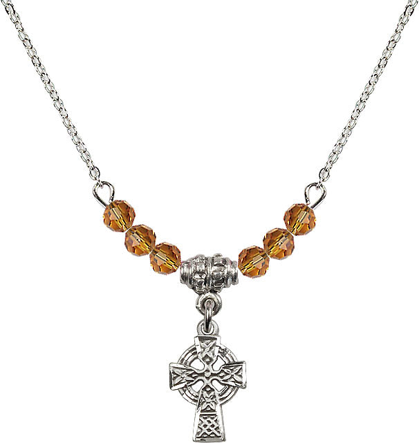 Necklace with 4mm Topaz Crystal Beads & Sterling Celtic Cross Medal
