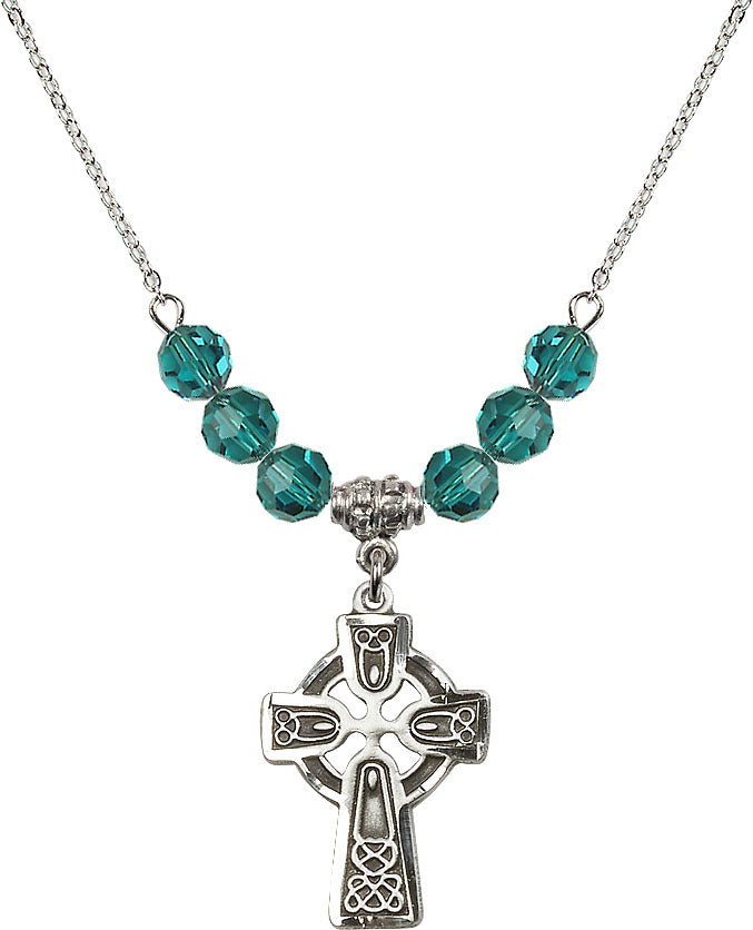 Our 18" Rhodium Plated Necklace with 4mm Zircon Crystal Beads featuring a Sterling Silver Celtic Cross Medal. is proudly manufactured in the USA.