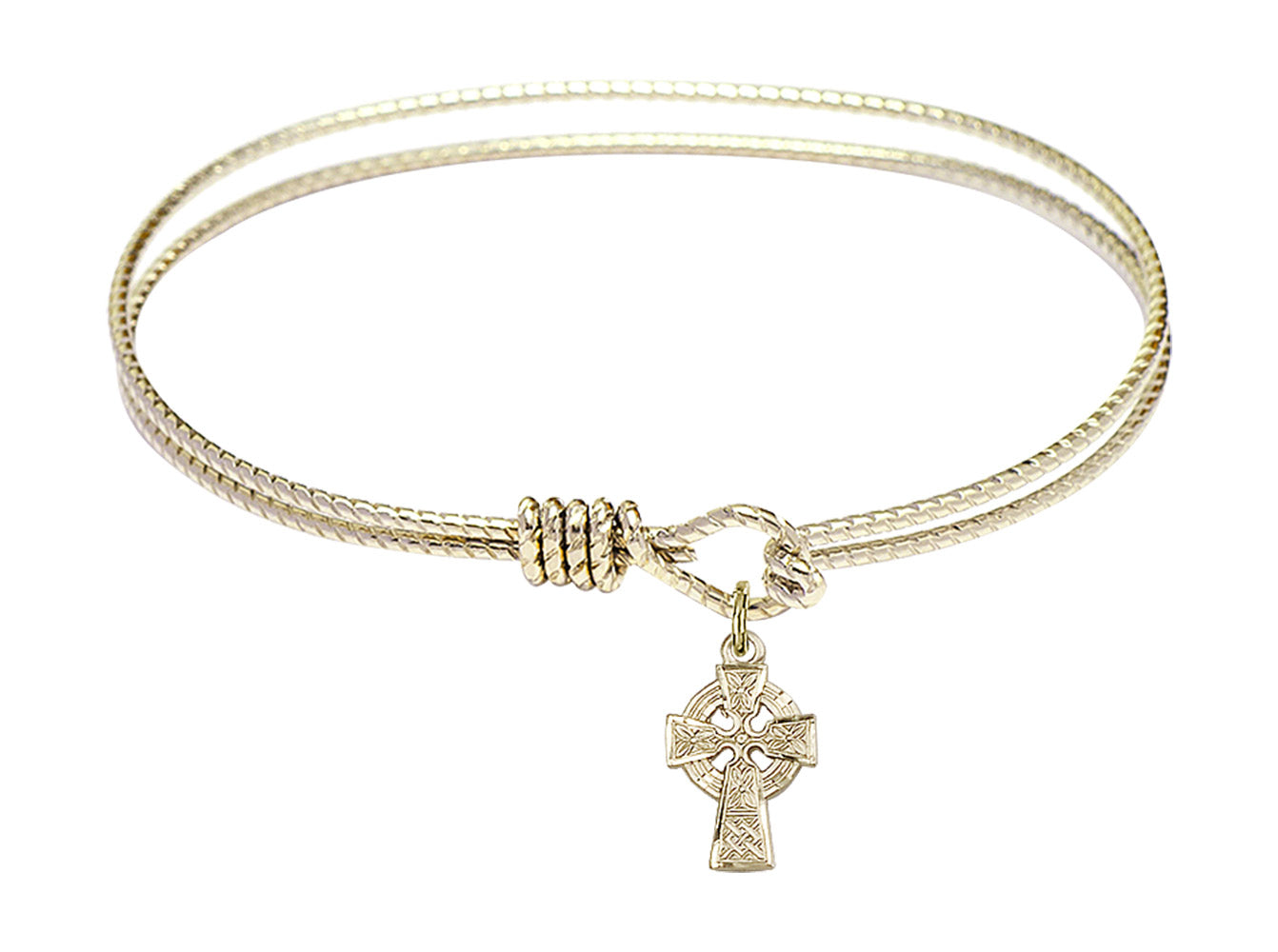 7 1/4 inch Oval Eye Hook Hamilton Gold Bangle Bracelet with 14kt Gold Filled Celtic Cross Charm