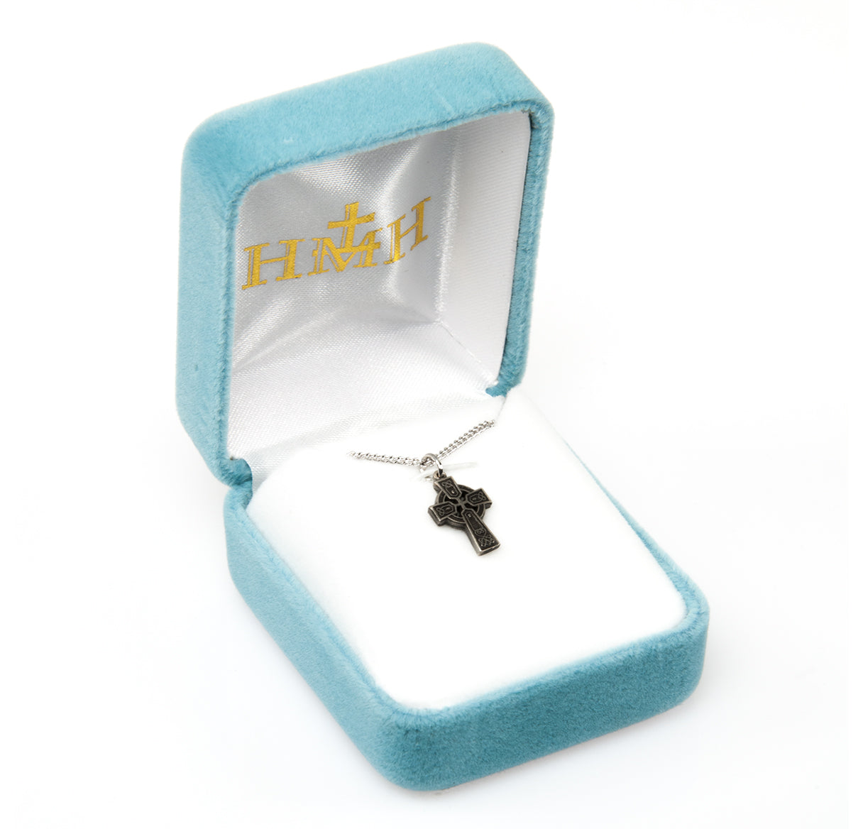 1/2-inch Celtic Cross with ancient Celtic Knots in the design. A Pierced out halo surrounds the center of the cross. This top quality pendant is made from Genuine.925 Sterling Silver with a Tarnish Resistant 18-inch Endless Rhodium Plated Heavy Curb Chain. Only the Finest Quality materials are used by New England Silversmith Craftsmen. Made in the USA. Gift. It comes in a deluxe gift box.