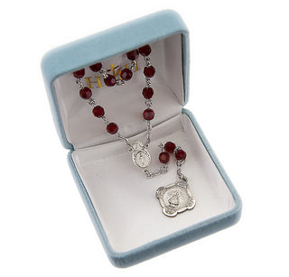Sterling Silver Infant Jesus of Prague Chaplet with Miraculous Centerpiece made with Finest Crystal 6mm Ruby Beads
