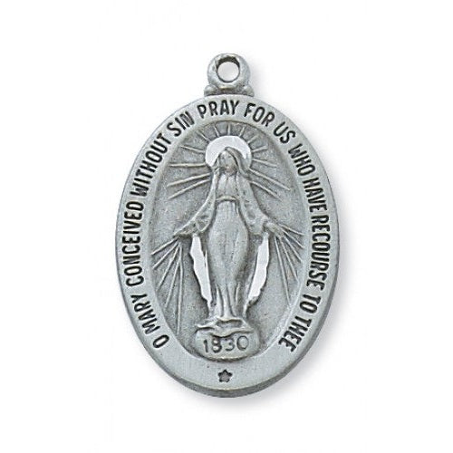 Pewter Miraculous Medal with 18-inch Chain