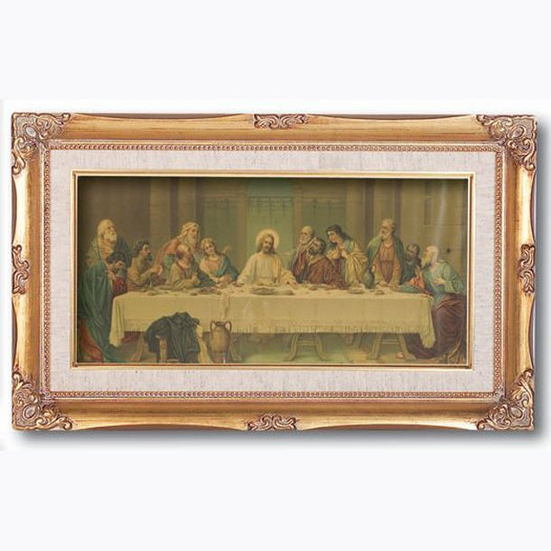 The Last Supper By Parietti Goldleaf Wood Frame is a stunning portrayal of one of the most significant moments in the Gospels, perfect for enhancing your spiritual space. Measuring 11'' x 19'', this exquisite artwork is crafted with genuine gold leaf and framed under glass, adding a touch of elegance to your home or church. Each piece comes securely boxed, making it a thoughtful gift for family and friends, or a cherished addition to your own collection.