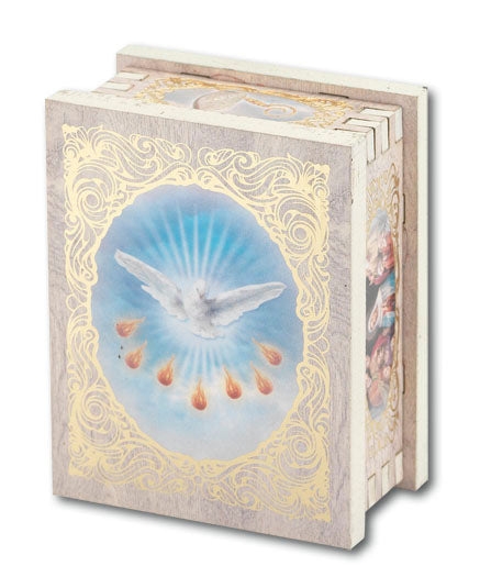 Confirmation 2X2.75" White Wood Rectangular Rosary Box