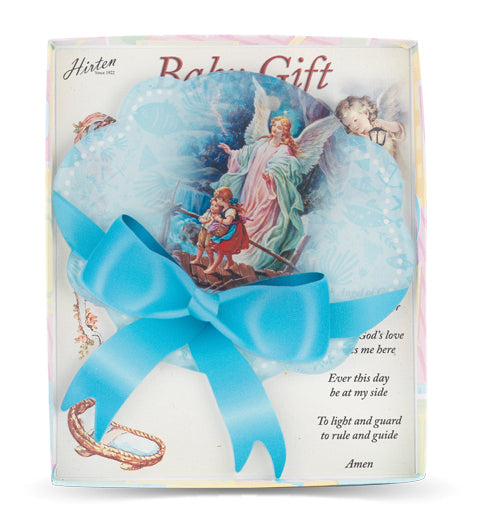 5X5.5" Guardian Angel On Bridge Blue Plexy Crib Medal