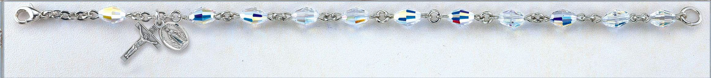 All Sterling Silver 6x9mm Aurora Finest Austrian Crystal Oval Beads with Sterling Silver Miraculous Medal and Crucifix.