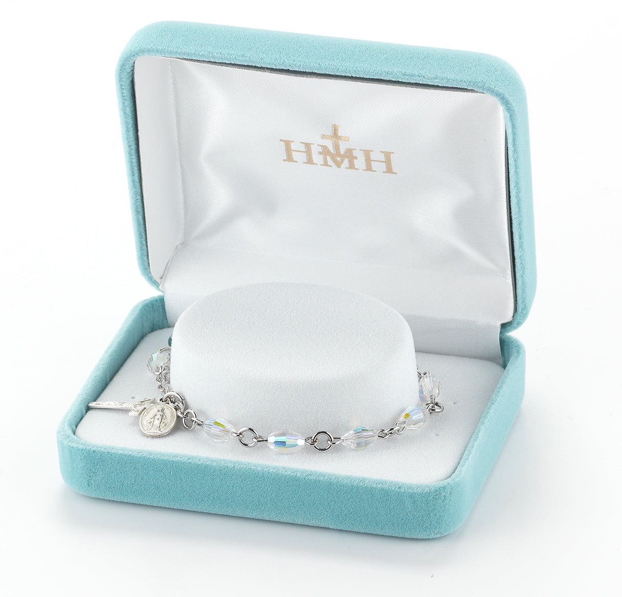 This 6x9mm Finest Austrian Crystal Rosary Bracelet is made in the USA.