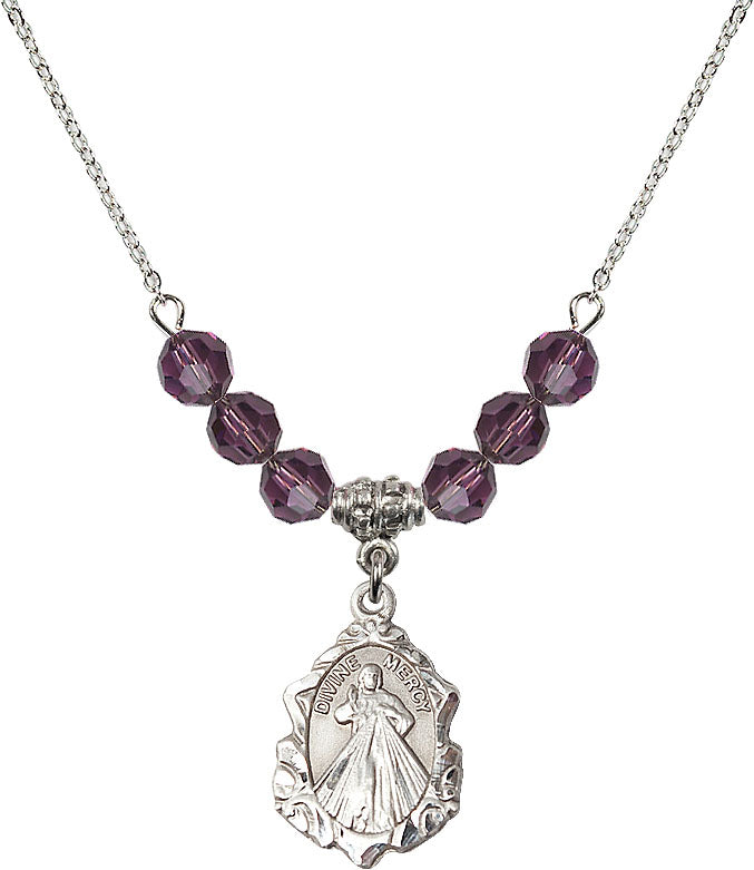 Our 18" Rhodium Plated Necklace with 4mm Amethyst Crystal Beads featuring a Sterling Silver Divine Mercy Medal. is proudly manufactured in the USA.