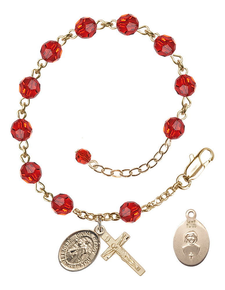 14Kt Gold 6mm Austrian Crystal Divine Mercy Rosary Bracelet in Ruby