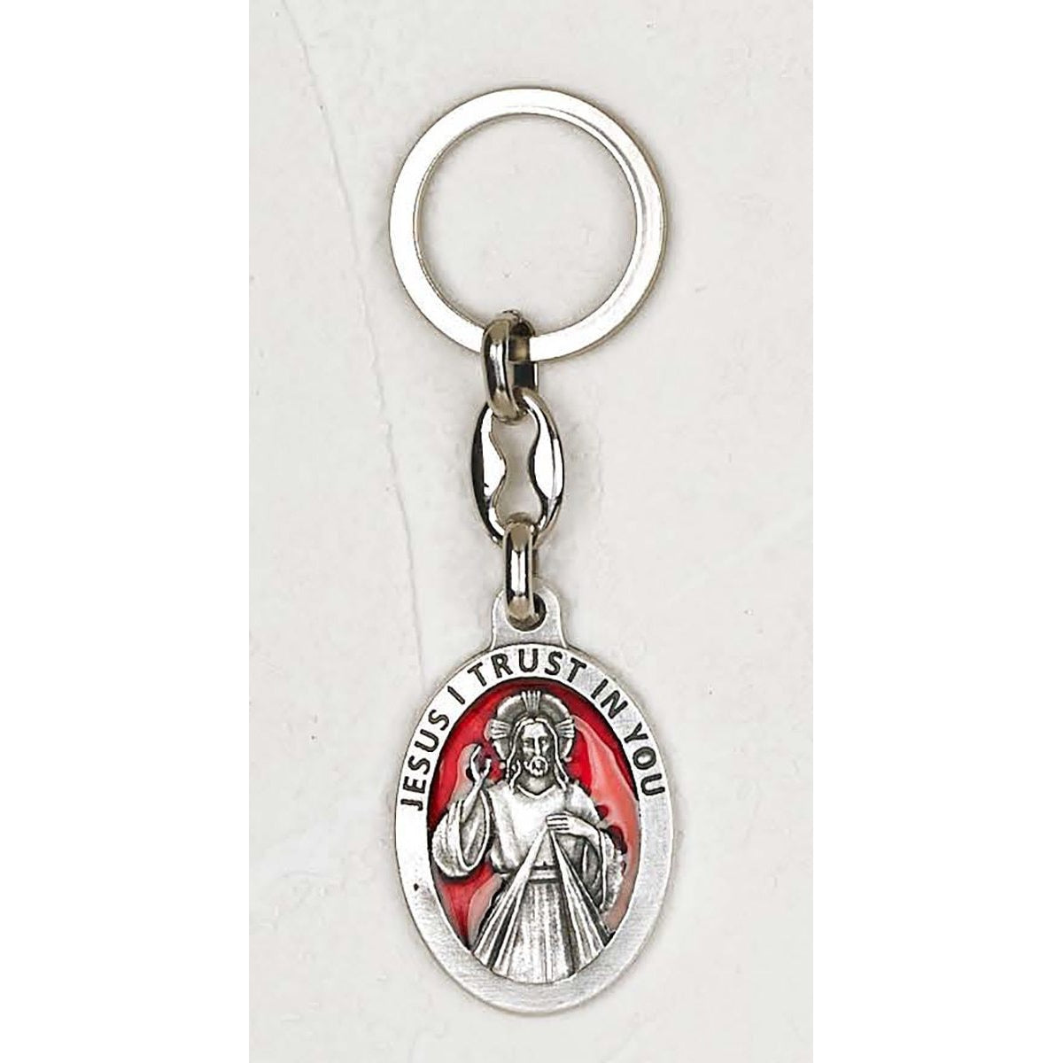 Share the grace of Divine Mercy with these beautiful Italian-made enameled key chains, sold in a convenient 6-pack. Each oval medal measures 1-1/2 inches and features the iconic image of Jesus as He appeared to St. Faustina Kowalska, with the words "Jesus, I Trust in You." The durable enamel finish protects the vibrant image, making these ideal for daily use on keys, backpacks, or rosary pouches.