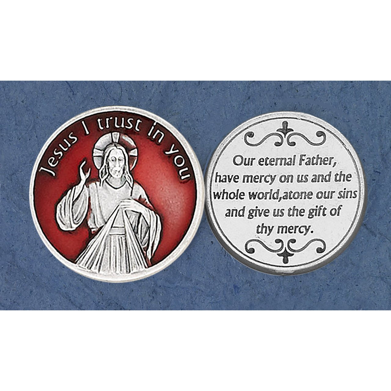 Bulk Light Red Enameled Divine Mercy Token