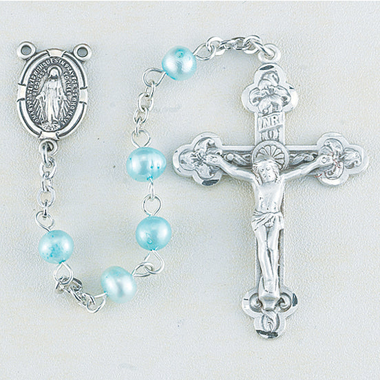 Blue Freshwater Pearl Rosary - Engravable