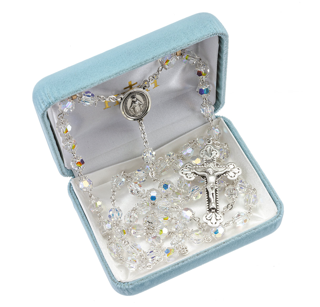 This Finest Austrian Crystal Sterling Rosary is made in the USA.
