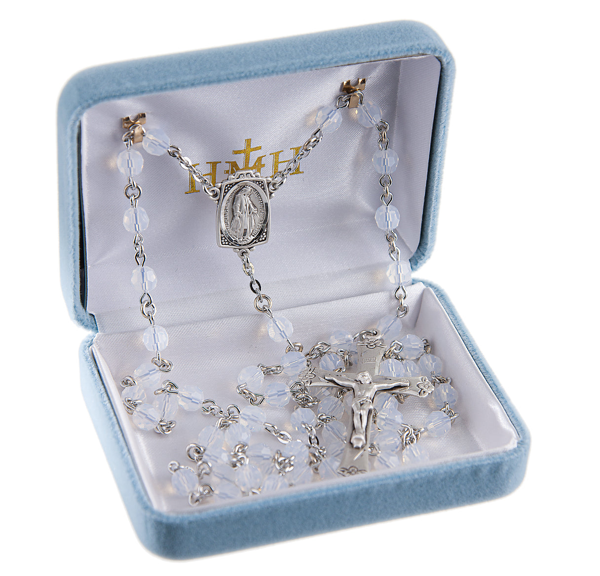 This Opal Finest Austrian Crystal Rosary is made in the USA.