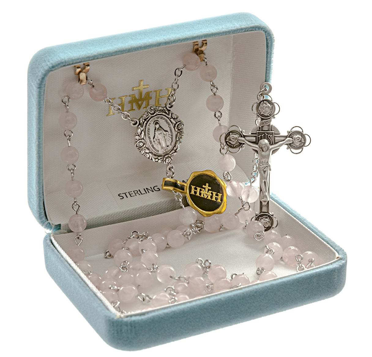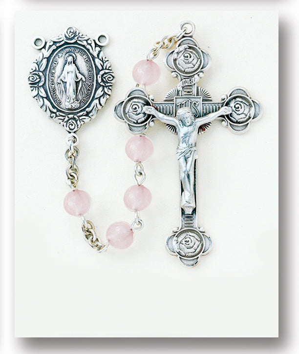 This Round Genuine Rose Quartz Rosary is made in the USA.