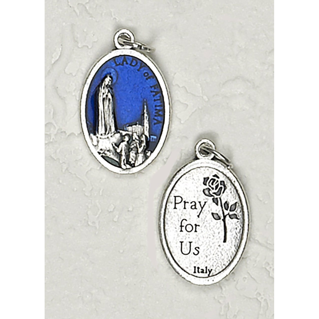 This 3/4-inch Blue Enamel Our Lady of Fatima Medal can only be purchased in these bulk lots of 25 units at a discounted wholesale price, which is now available to the public. These discounted bulk packs offer the perfect solution if you want to give these Catholic goods away as gifts or to use as free envangelizing tools. Imported from Italy.