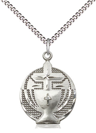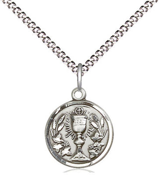 Sterling Silver Round Frst Holy Communion Pendant Pendant with Chain