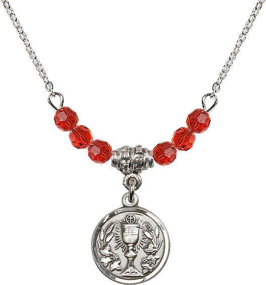This 18-Inch Rhodium Plated Necklace comes with 4mm Ruby Beads and a Communion Chalice charm and features the Catholic Shop.com money-back guarantee.
