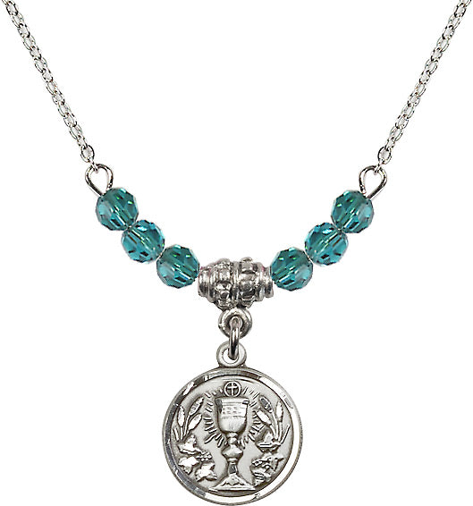 This 18-Inch Rhodium Plated Necklace comes with 4mm Zircon Beads and a Communion Chalice charm and features the Catholic Shop.com money-back guarantee.