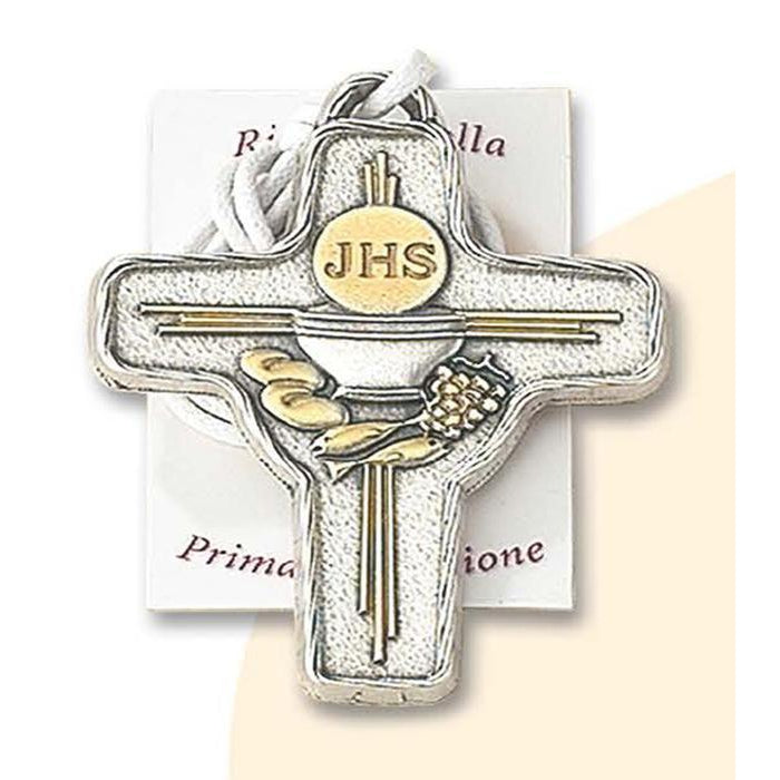 This beautiful 3-pack of First Holy Communion crosses offers an elegant keepsake for celebrating this sacred milestone. Each 2-3/4 inch two-tone cross features a harmonious blend of metallic finishes that catch the light beautifully, creating a meaningful symbol of faith that young communicants will treasure. Made in Italy by Lumen Mundi, these crosses reflect generations of craftsmanship and devotion to creating quality religious items.