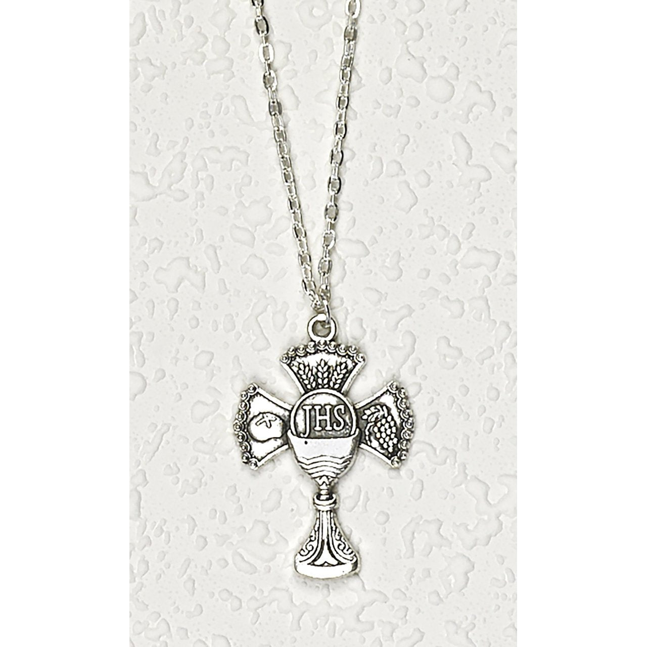 This pack of 6 First Communion crosses is perfect for parishes, religious education programs, or families preparing multiple children for this blessed sacrament. Each silver-tone cross measures 1½ inches and features beautiful detailing appropriate for a child's First Holy Communion. The crosses come with 18-inch chains, an ideal length for young communicants to wear comfortably during Mass and beyond.