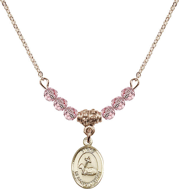 Gold-Plated Necklace with 4mm Light Rose Crystal Beads & 14K-Filled First Reconciliation Medal
