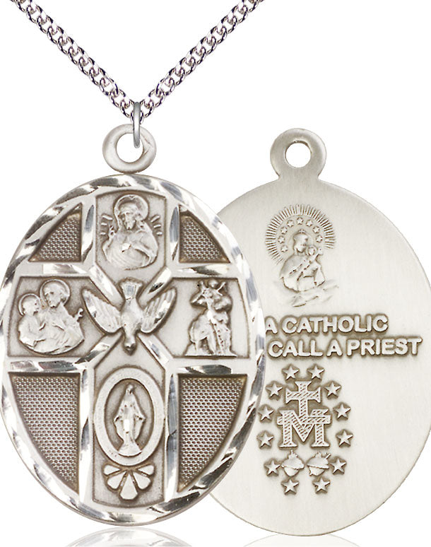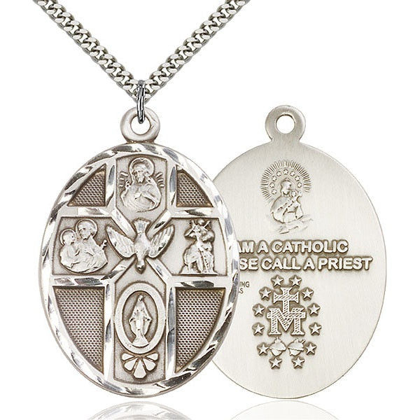 1 7/8 x 1 1/4-inch Sterling Silver 5-Way / Holy Spirit Medal.