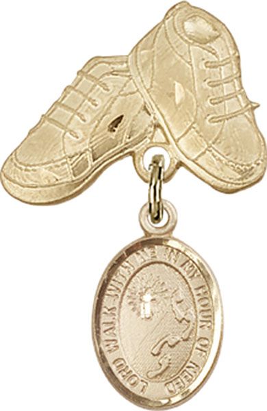 14kt Gold Filled Baby Badge with Footprints / Cross Charm and Baby Boots Badge Pin