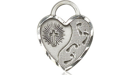 Sterling Silver Footprints Heart Medal | Medium | Engravable