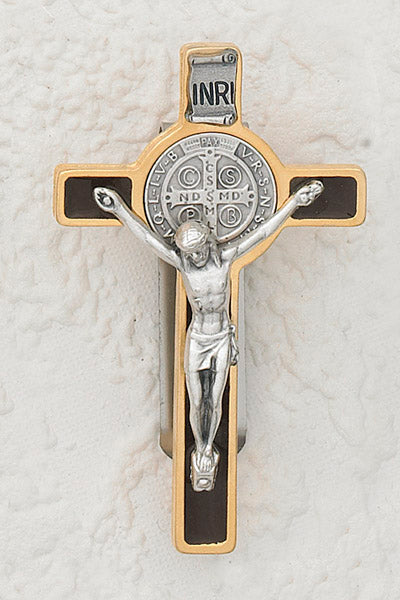 Car Visor- Saint Benedict Black/Gold Enamel 3 inch with clip